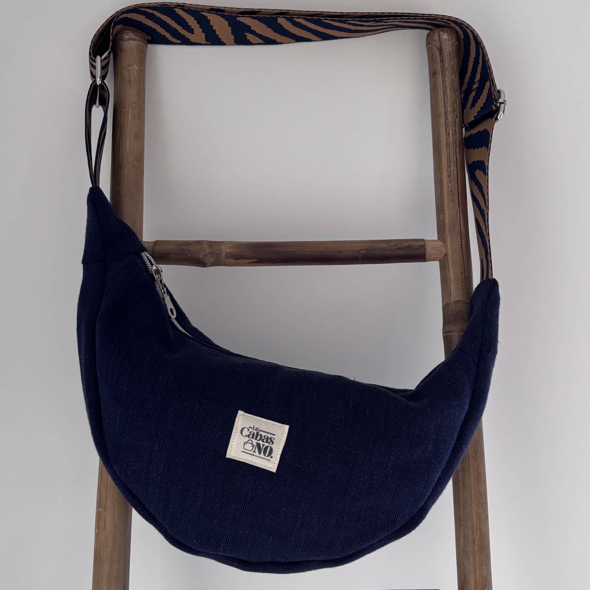 Sac banane demi-lune MARGUERITE toile de chanvre bleu marine