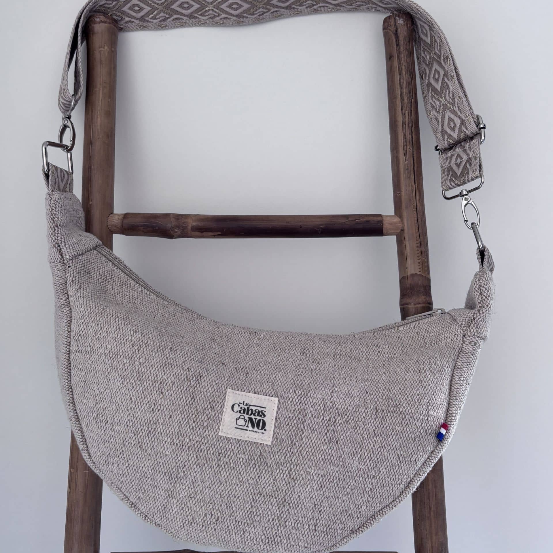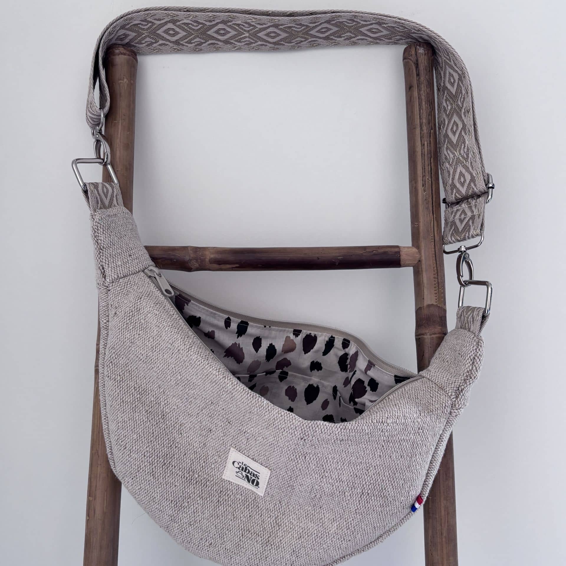 Sac banane demi-lune ROSEN toile canvas beige ficèle