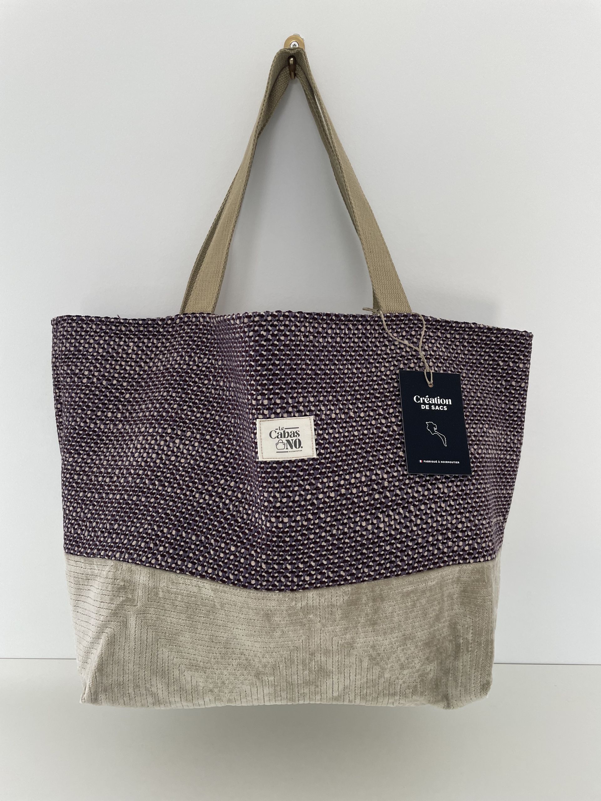 Cabas LOUISE bicolore canvas mauve et velours beige