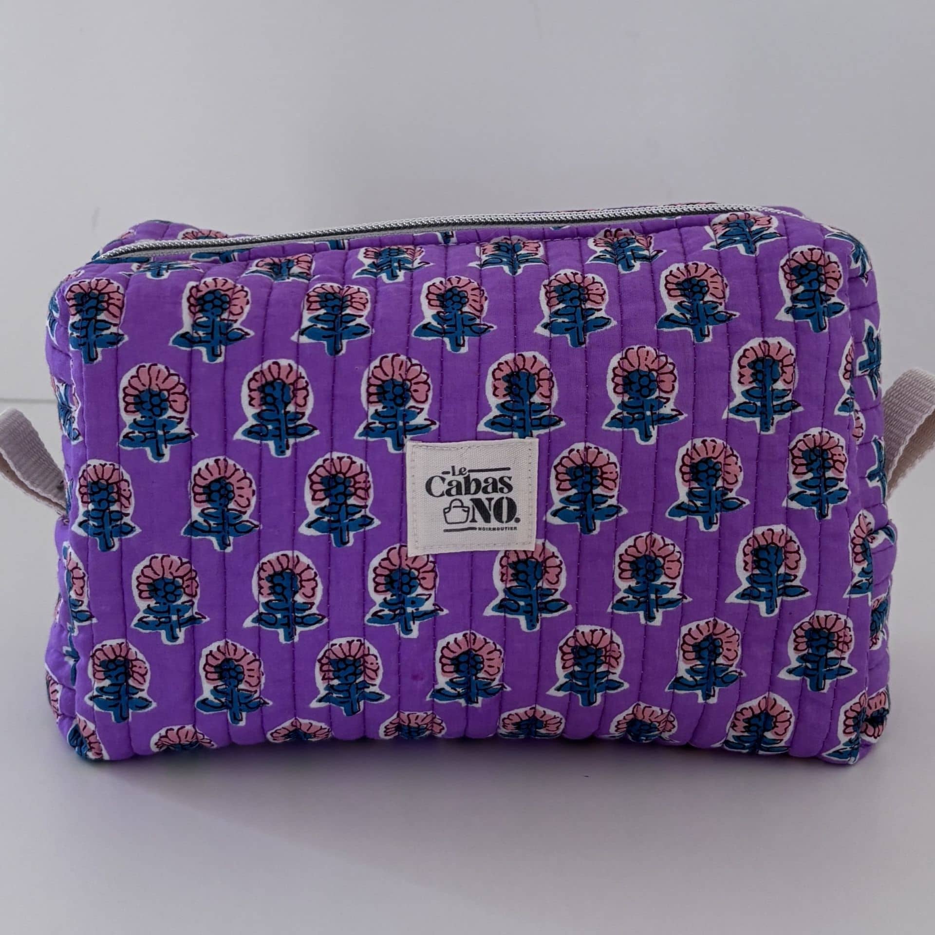 Trousse de toilette ENORA coton matelassé indien mauve fleuri