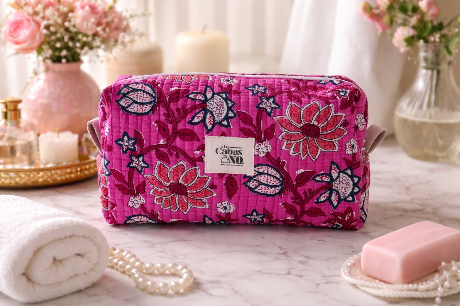 Trousse de toilette LIZA grand modèle coton matelassé indien rose fleuri